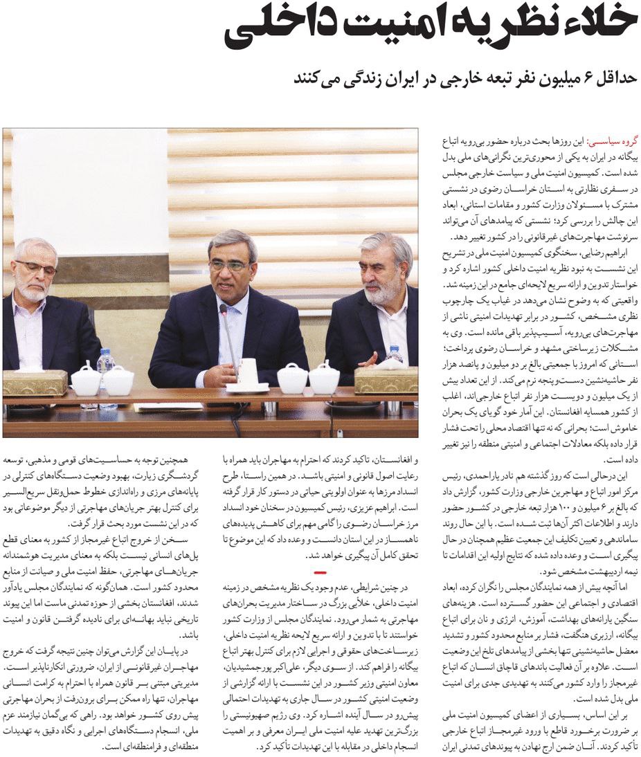 روزنامهٔ سازندگی: خلاء نظریه امنیت داخلی