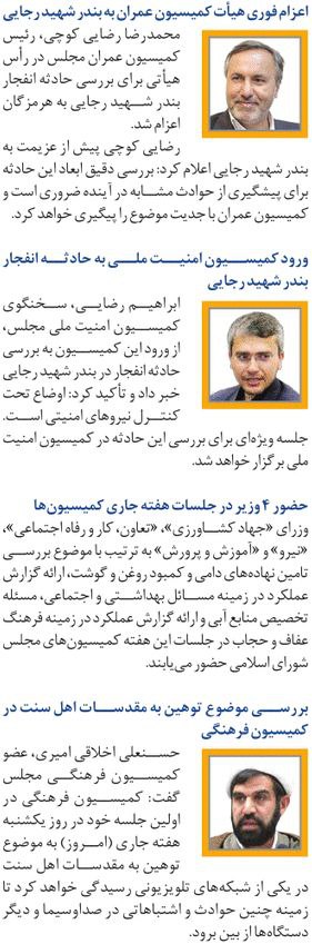 روزنامهٔ همشهری: اعزام فوری هیات کمیسیون عمران به بندر شهید رجایی