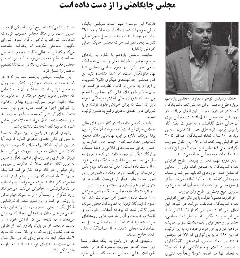 روزنامهٔ امین: مجلس جایگاهش را از دست داده است