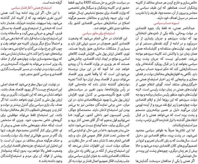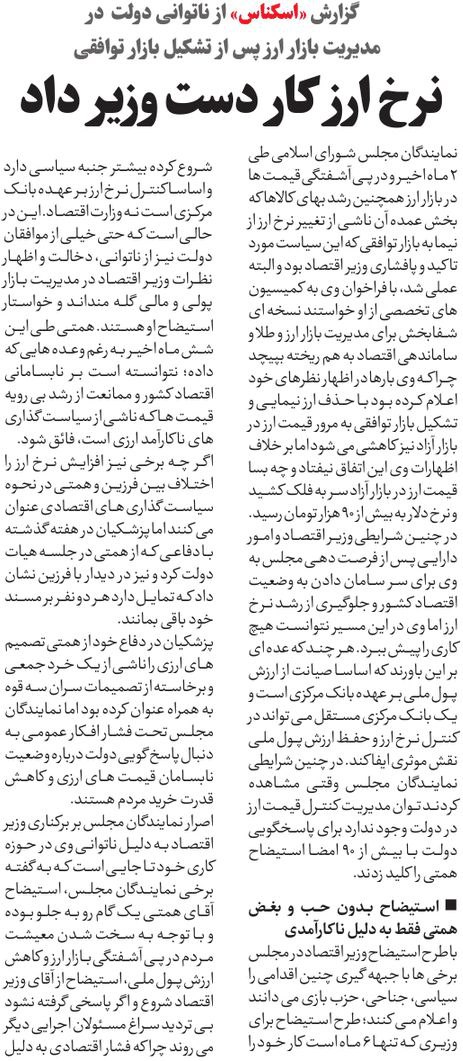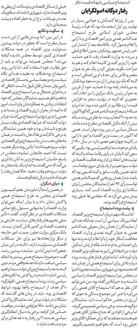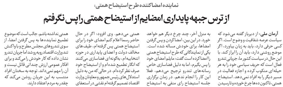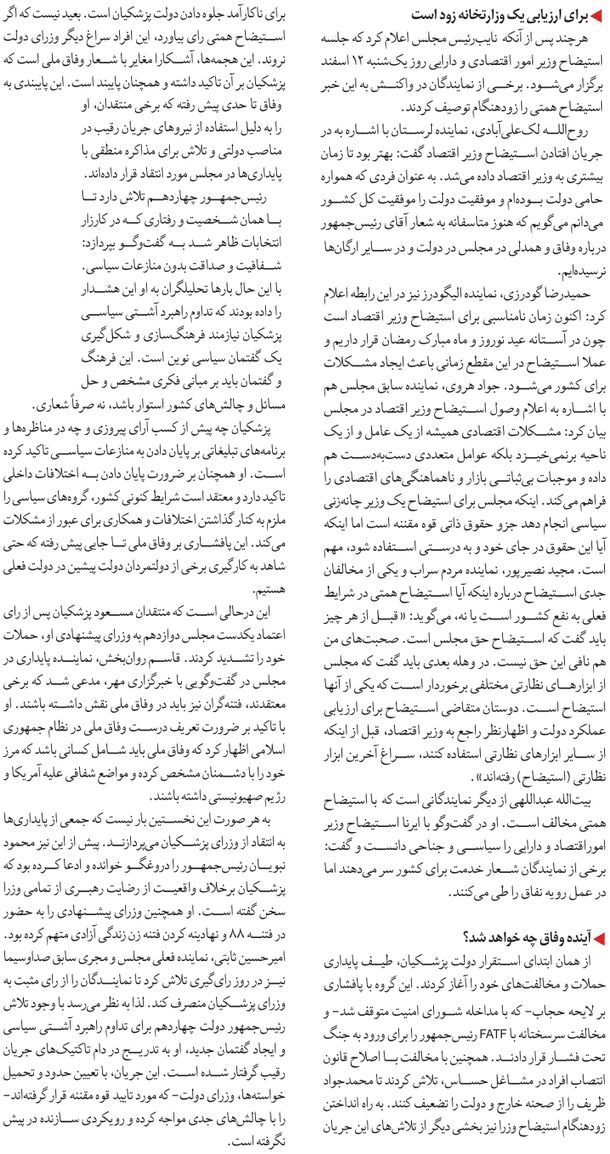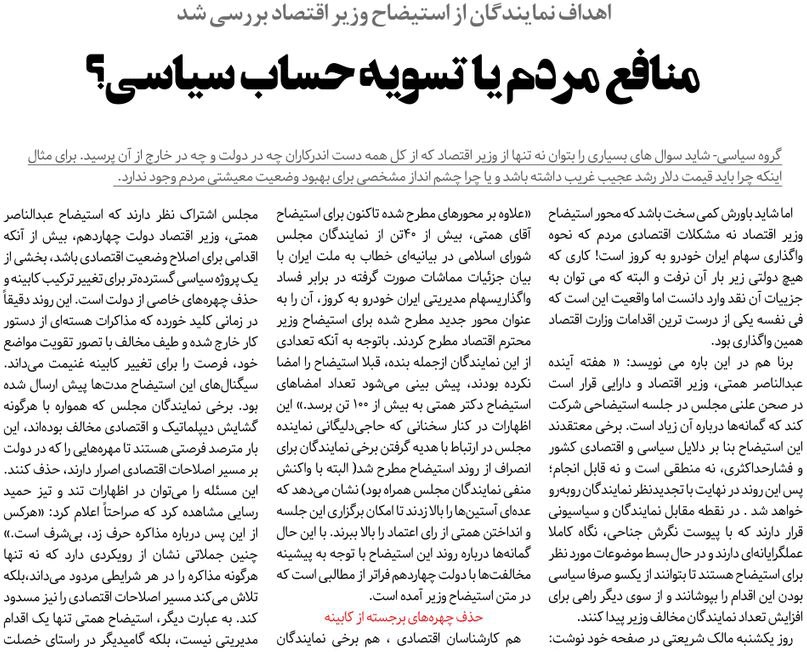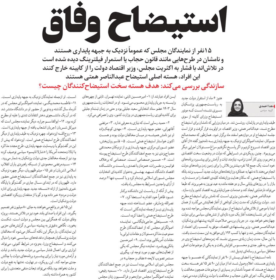 روزنامهٔ هممیهن: استیضاح وفاق