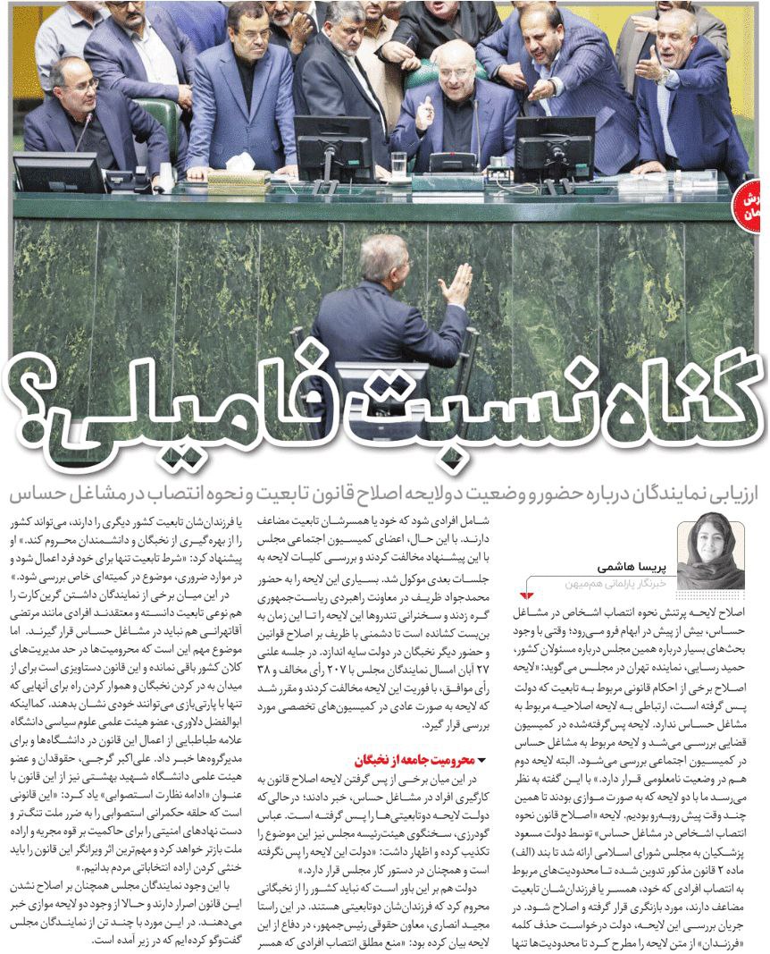 روزنامهٔ هممیهن: گناه نسبت فامیلی؟
