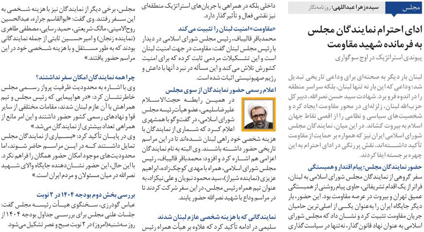 روزنامهٔ همشهری: ادای احترام نمایندگان مجلس به فرمانده شهید مقاومت