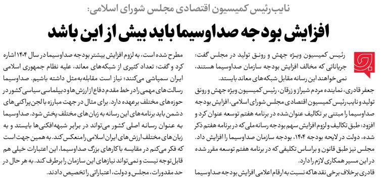 روزنامهٔ جم جم: افزایش بودجه صدا و سیما باید بیش از این باشد