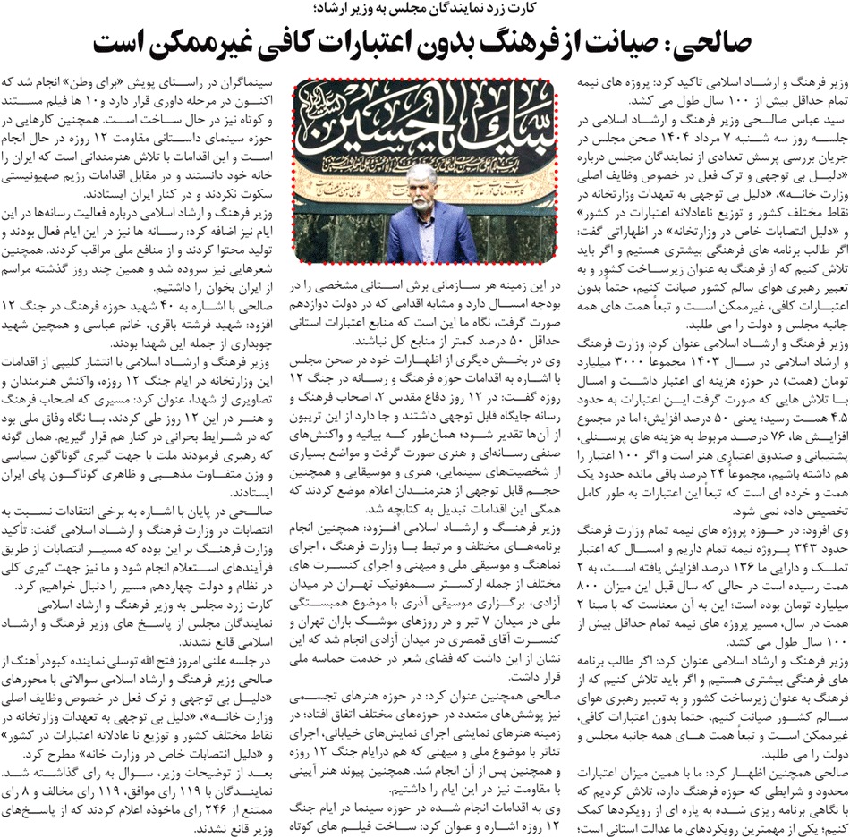 • مجلس در مطبوعات – ۸ مرداد ۱۴۰۴