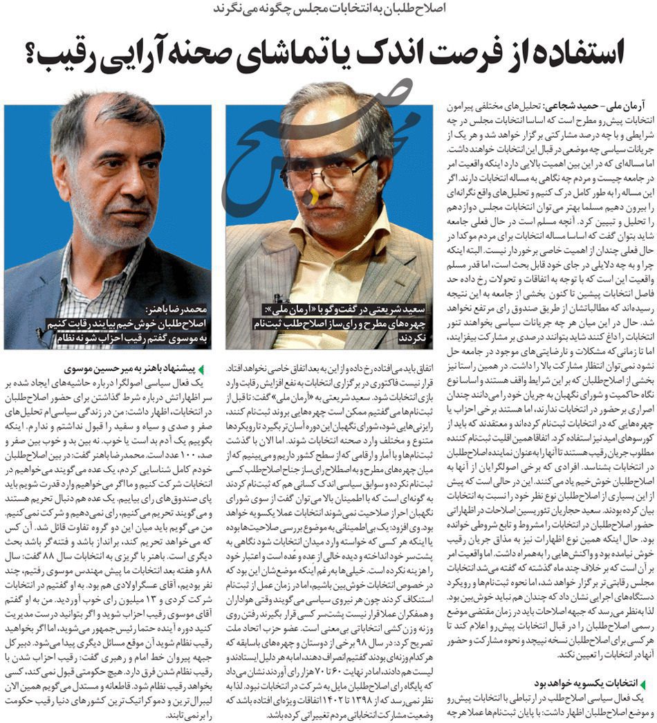 روزنامهٔ آرمان ملی: استفاده از فرصت اندک یا تماشای صحنهآرایی رقیب؟