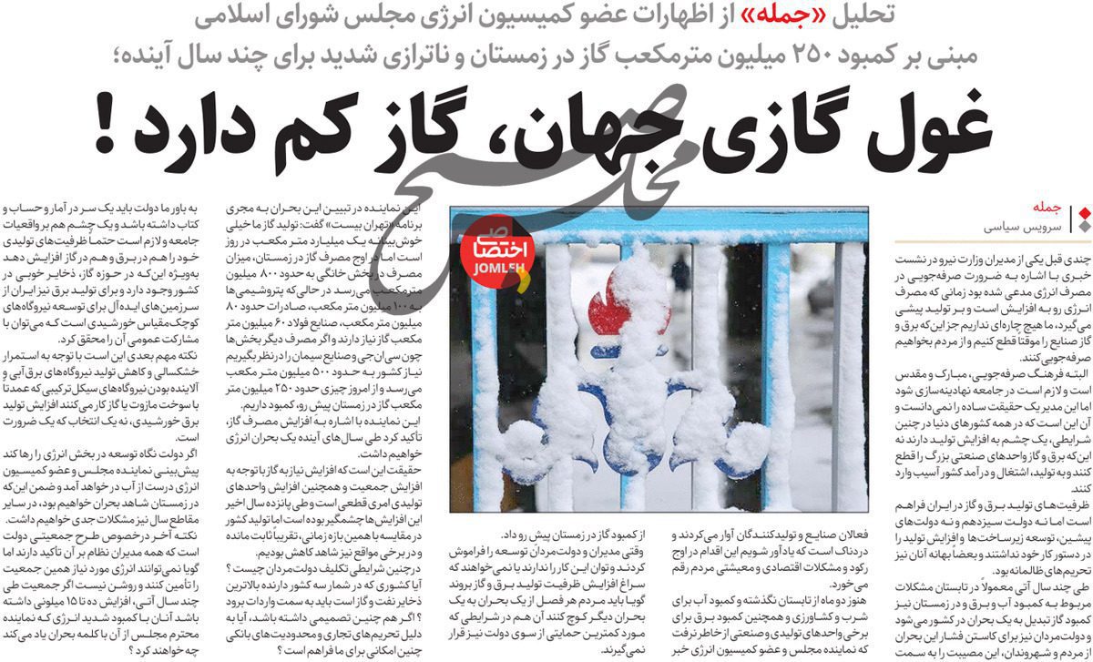 روزنامهٔ جمله: غول گازی جهان، گاز کم دارد!