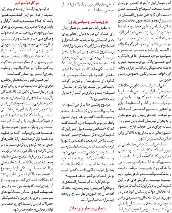 روزنامهٔ ایران: سیاست زیرسایه استیضاح