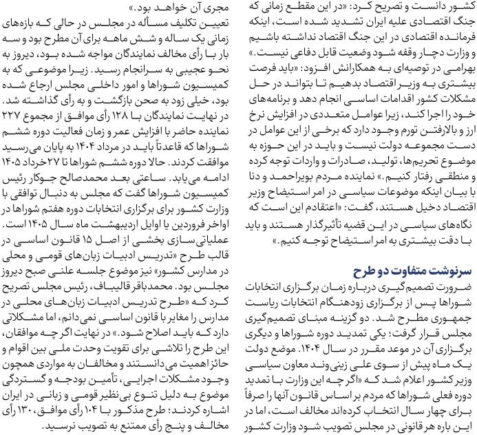 مجلس در مطبوعات – ۹ اسفند ۱۴۰۳