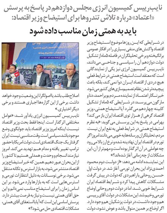 روزنامهٔ اعتماد: باید به همتی زمان مناسب داده شود