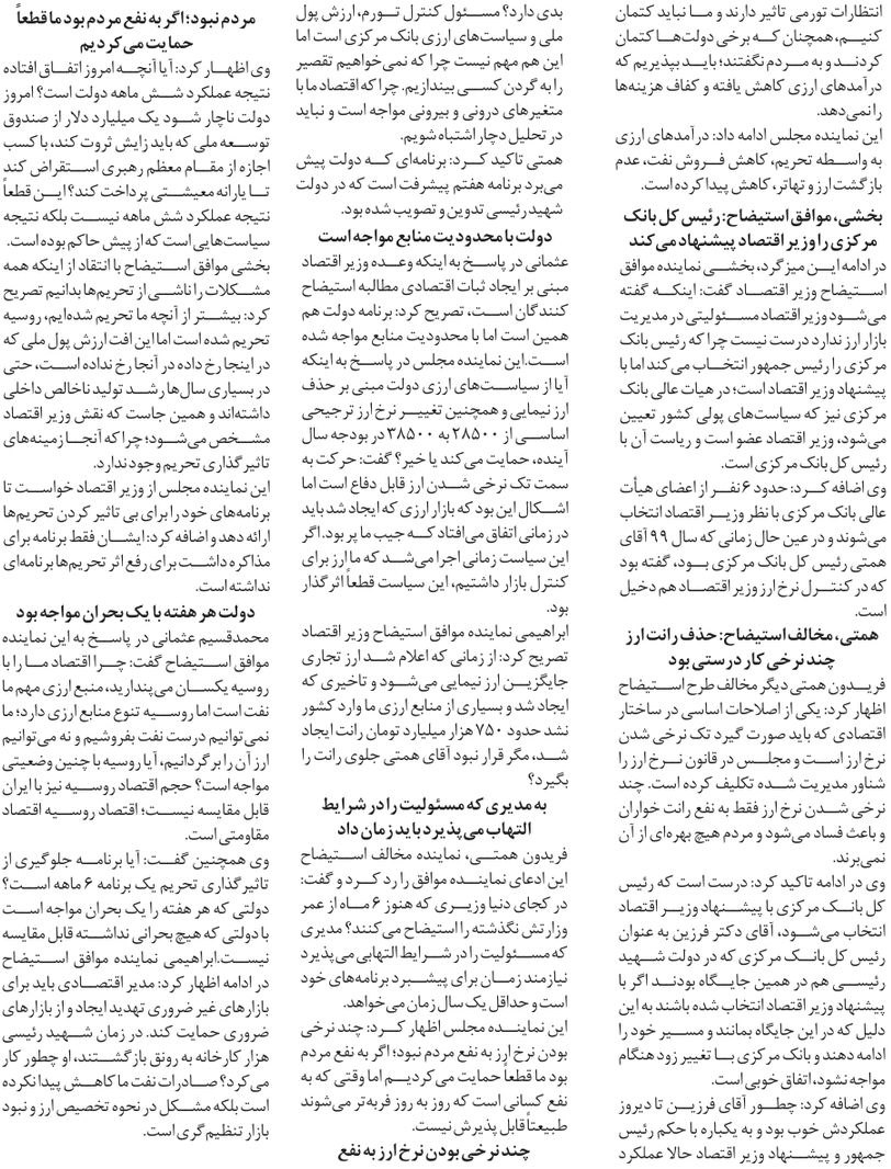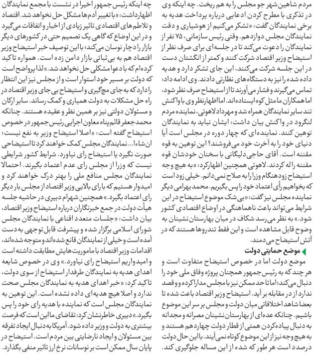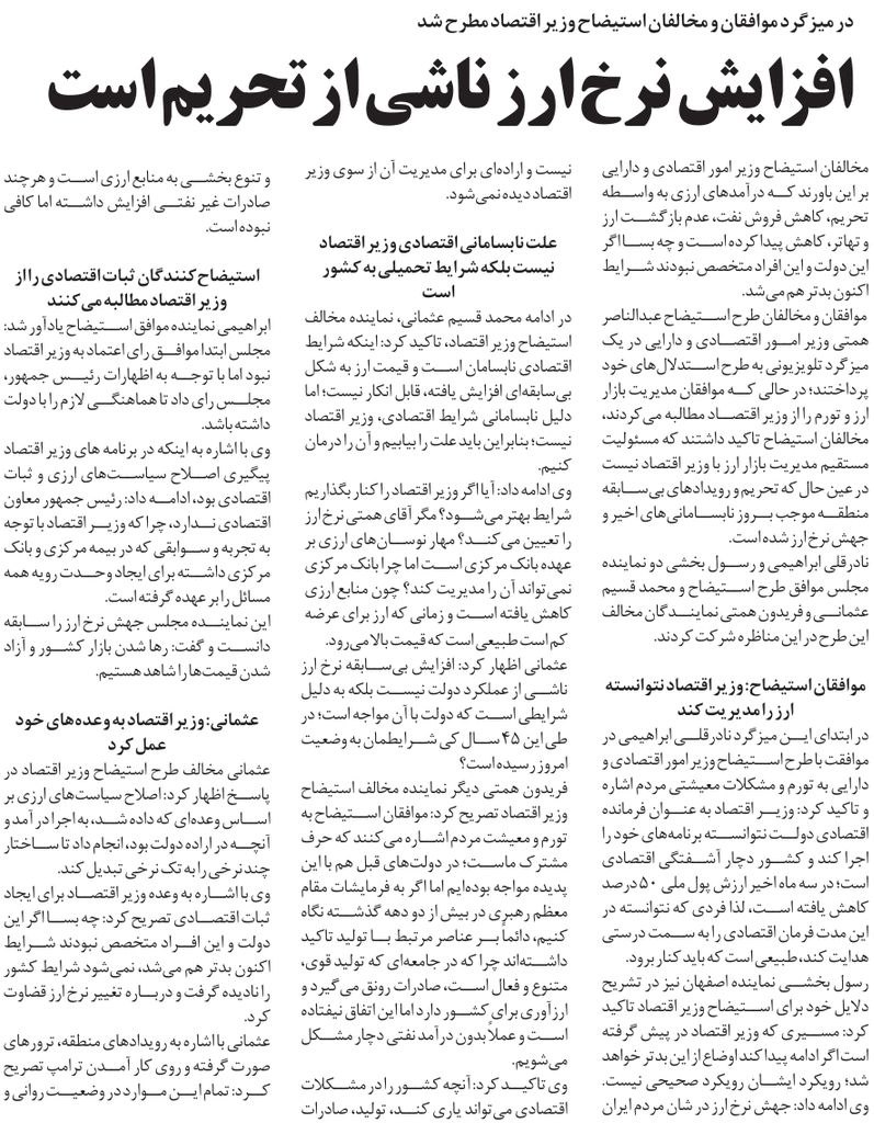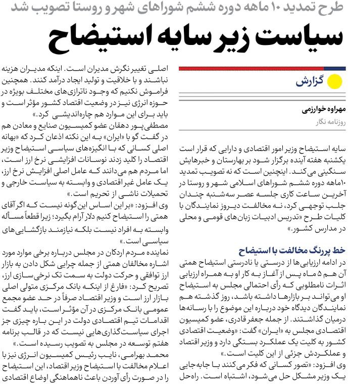 روزنامهٔ ایران: سیاست زیرسایه استیضاح