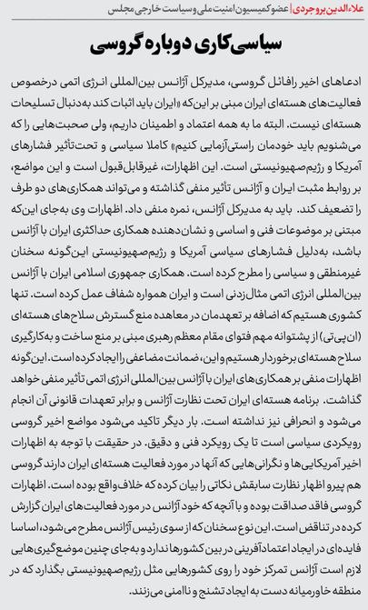 روزنامهٔ جام‌جم: سیاسی کاری دوباره گروسی