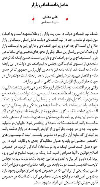 روزنامهٔ نقش اقتصاد: عامل نابسامانی بازار