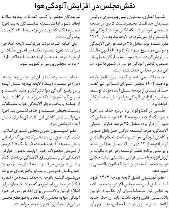 روزنامهٔ گسترش صمت: نقش مجلس در افزایش آلودگی هوا