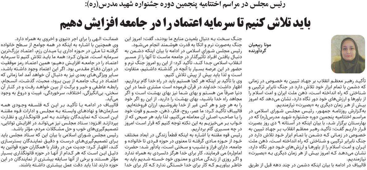 روزنامهٔ جمهور: باید تلاش کنیم تا سرمایه اعتماد را در جامعه افزایش دهیم