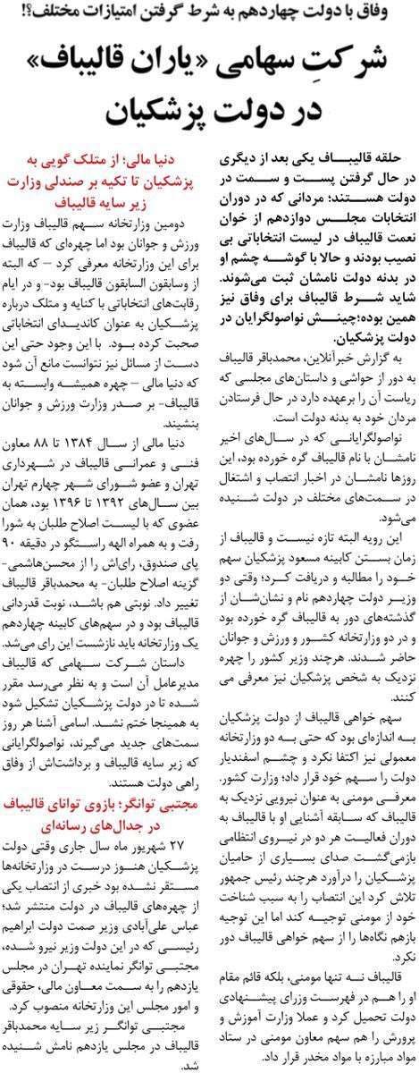 روزنامهٔ مردم سالاری: شرکت سهامی «یاران قالیباف» در دولت پزشکیان