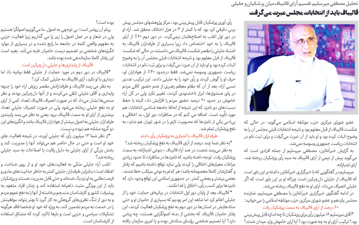 روزنامهٔ اتحاد ملت: قالیباف باید از انتخابات مجلس عبرت می‌گرفت