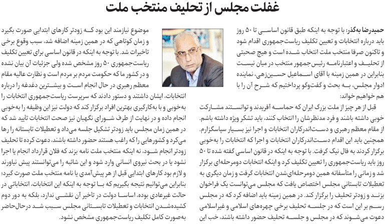 روزنامهٔ روزان: غفلت مجلس از تحلیف منتخب ملت